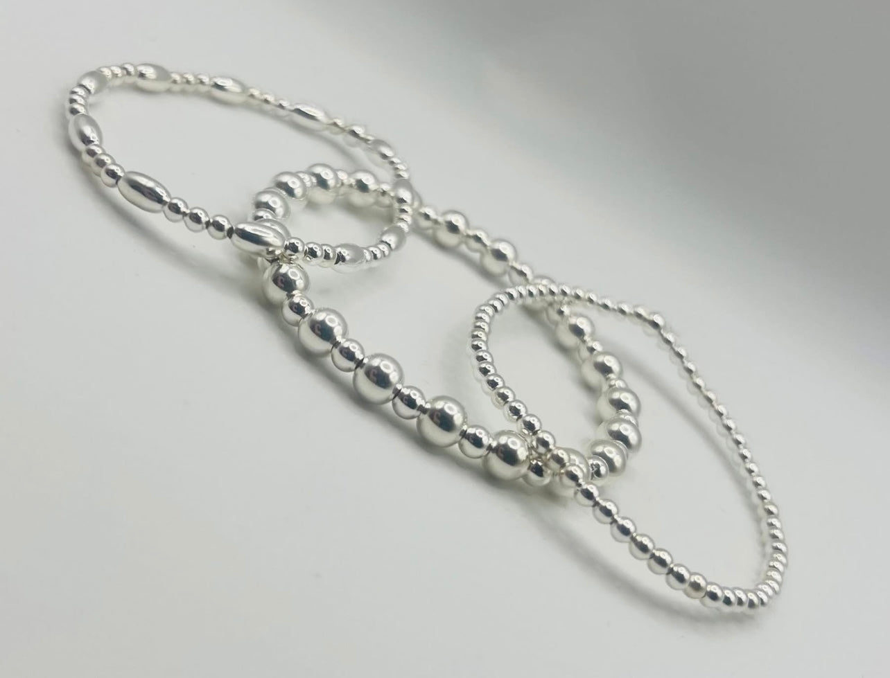 Simple and elegant stack of three bracelets, all handmade and sterling silver